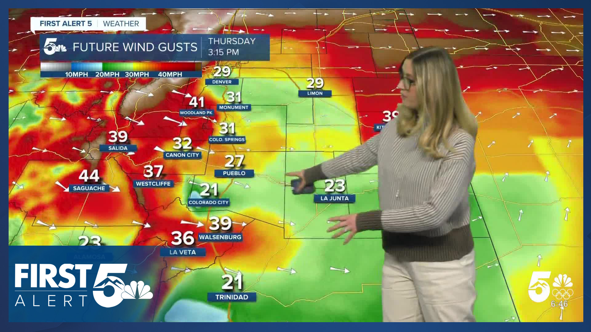 A strong cold front comes in Saturday night into Sunday morning, bringing light snow on Sunday morning to Teller County and El Paso County. Sunday will be chilly in the 40s and 50s.