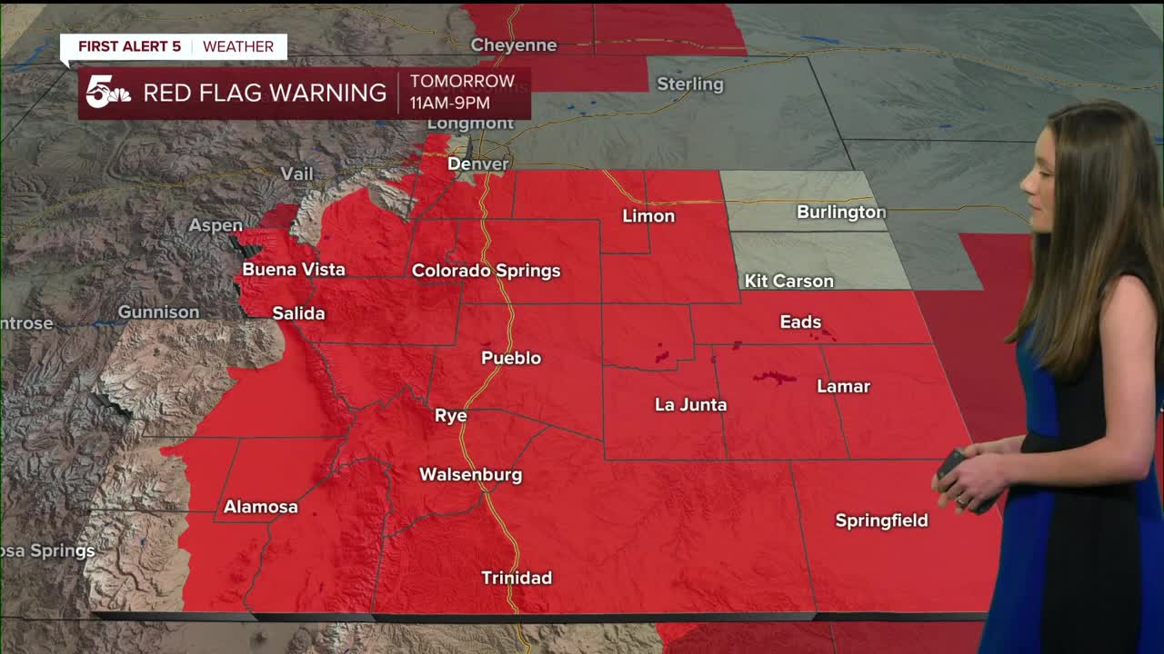 Colorado Springs will continue with the fire danger risk and red flag warnings will be in place from 11AM until 9PM. Gusts have the possibility of reaching 45mph. Temperatures will also stay warm with highs in the 70s.