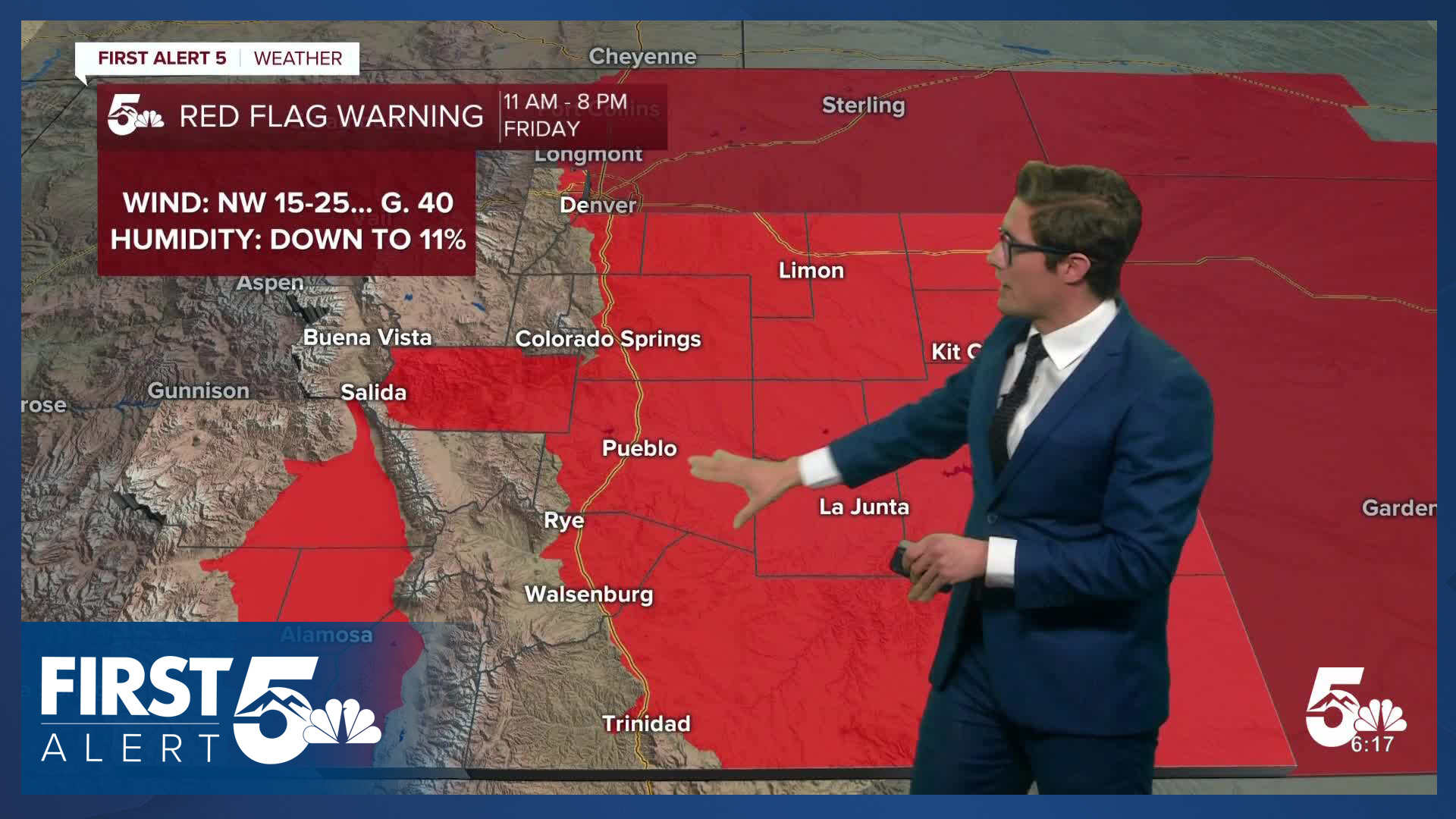 Following an overnight cold front, today will be breezy and cooler across southern Colorado. The front is bringing in dry, continental air, which will lead to another day with high fire danger. Morning temperatures will be in the 30s and 40s on the plains, warming to the mid-50s to mid-60s this afternoon. The average high today in Colorado Springs is 59, and 65 in Pueblo. Skies will start off mostly sunny, becoming partly cloudy in the mid-afternoon.