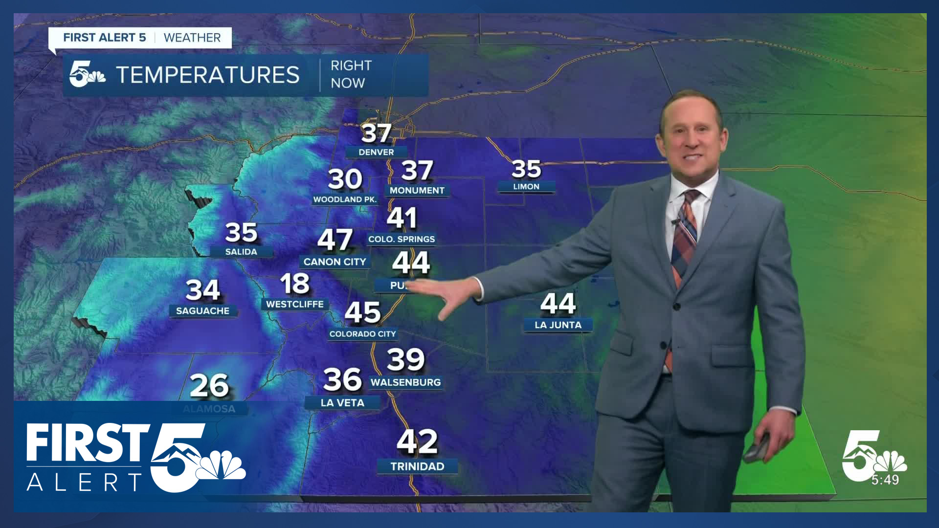 Temperatures on Saturday will start out in the 30s before climbing into the 60s and lower 70s on the Plains. A cold front on Saturday will increase the northerly wind in the afternoon, with gusts in the Springs up to 25 mph. Stronger gusts can be expected for areas east of I-25.