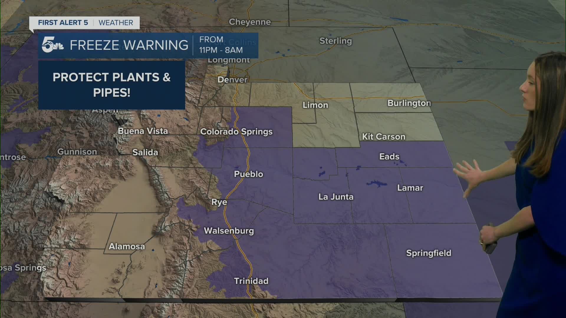 Colorado Springs and El Paso county will have freeze warnings overnight. Once the sun rises, temperatures will too and it will be a comfortable day. Afternoon temperatures will get into the lower 70s. Winds will still be on the lighter side.