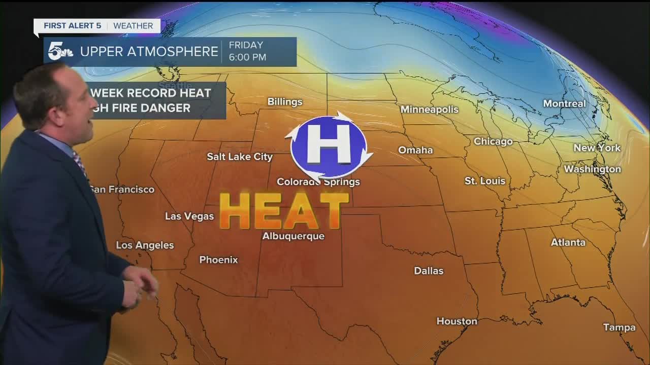 A cool front will push more smoke and haze into the forecast on Tuesday, along with gusty northerly winds for the Plains and Arkansas River Valley. Temperatures will only cool by a few degrees behind the front. The sizzling heat comes roaring back late this week as record highs may fall from Colorado Springs to Pueblo to Alamosa.