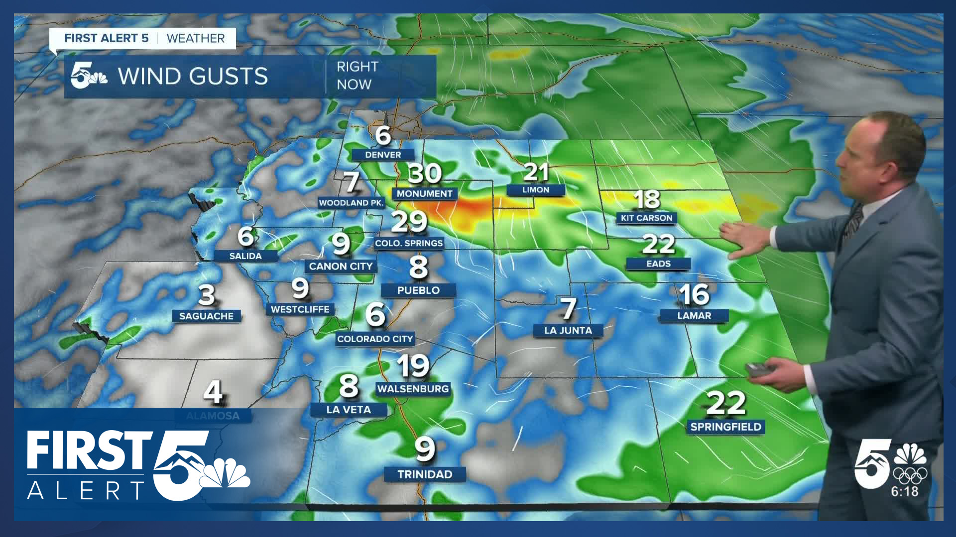 Colorado Springs forecast: High: 56; Low: 29. Northerly wind gusts to 30 mph will be possible this morning, with weakening wind and slightly below average highs on tap this afternoon.
