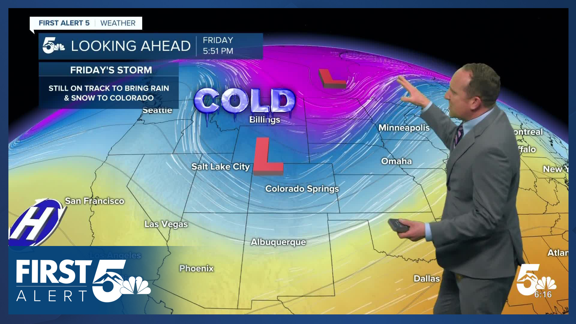 Heading into Friday, an incoming system will split into two pieces, with the northern piece sending a front into Southern Colorado. We'll track increasing chances for showers during the afternoon and evening hours with rain changing to snow. This snow wraps up on Saturday morning.