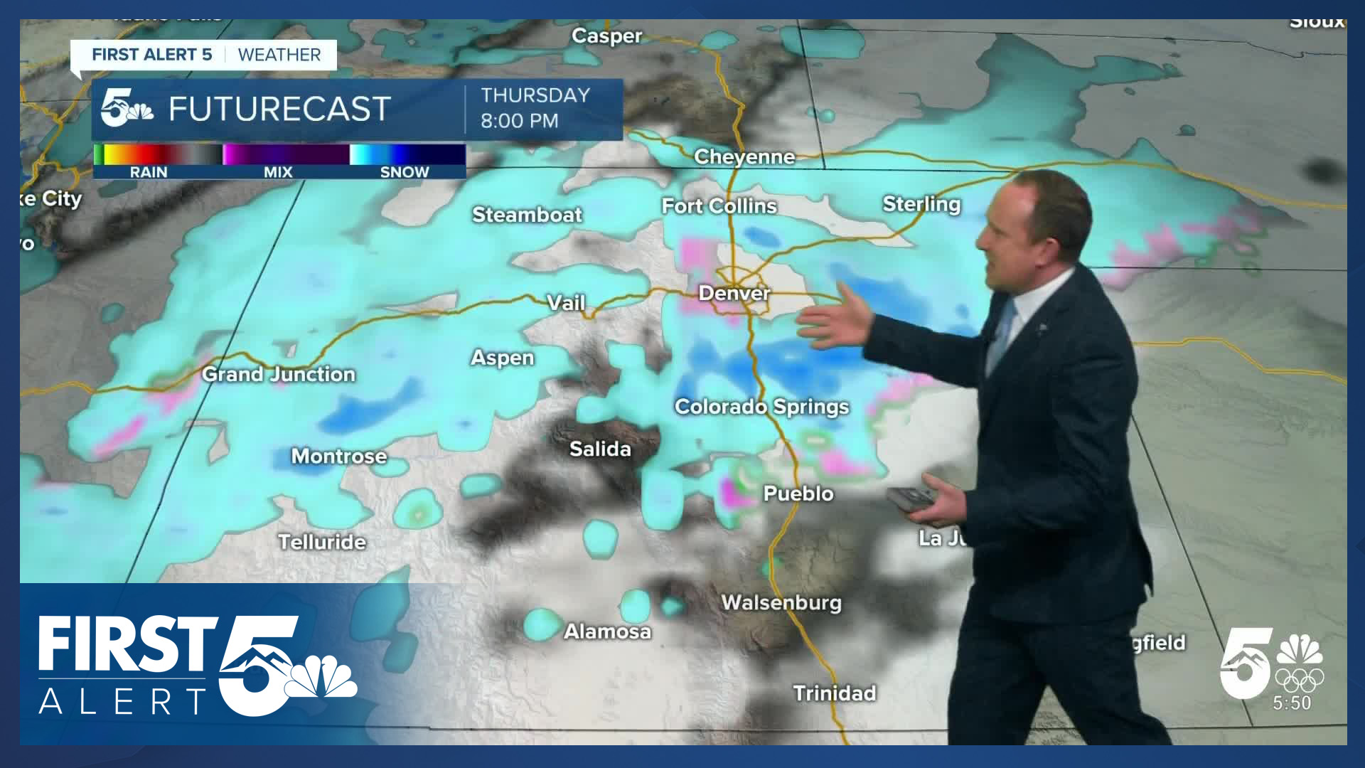 A storm dropping in from the north on Thursday will send a cold front into Southern Colorado. Moisture will increase as the upslope flow builds behind the front. This will set the stage for snow to return! Snow is likely to develop during the day on Thursday before tapering off Friday afternoon. Although it's too early to put out a region-wide snowfall forecast, an early estimate for Colorado Springs is for 2-4" of snow from the storm. As we continue to nail down snow totals late this week, stay tuned for updates from First Alert 5.