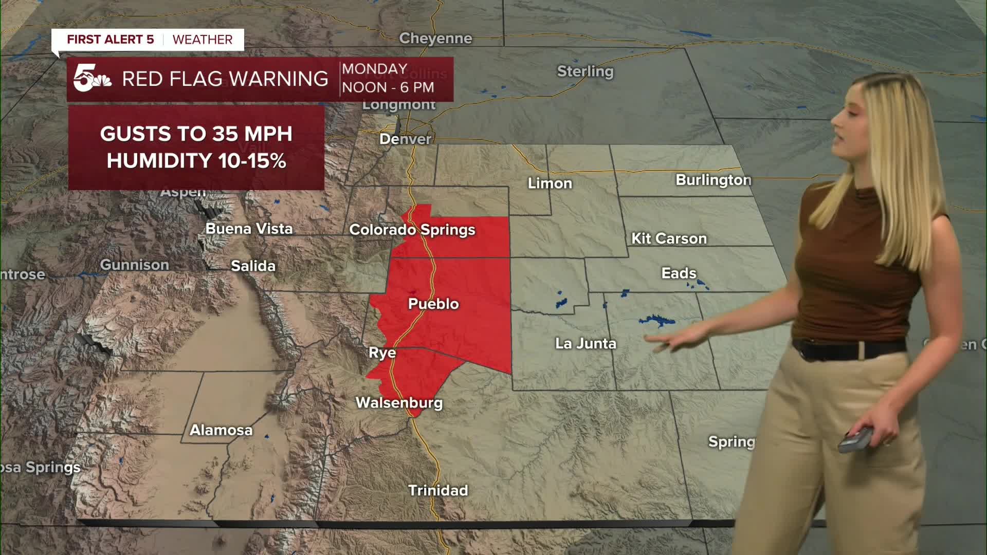 A RED FLAG WARNING is in effect from noon until 6 pm for the Walsenburg vicinity. Wind will be out of the W at 10-15 mph, gusting to 35 mph.
