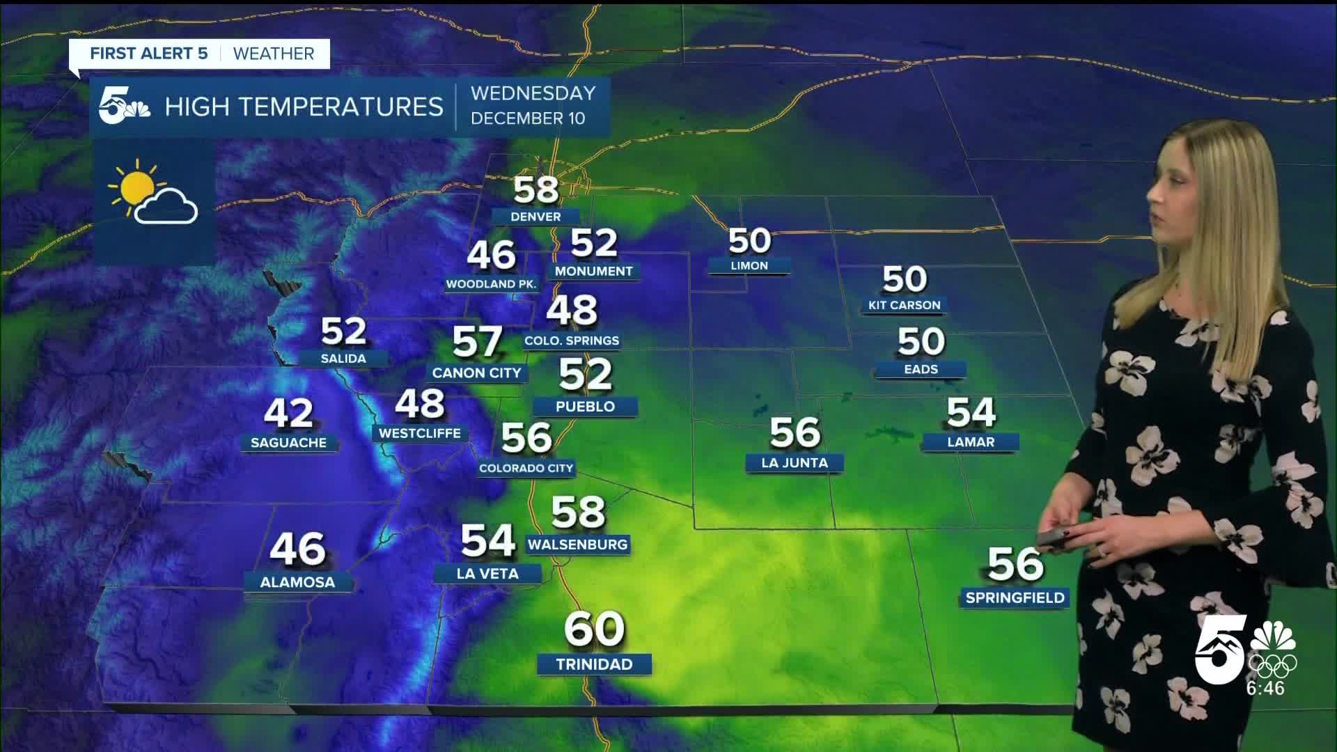 Walsenburg and Trinidad forecast: Low: 31/30; High: 58/60;