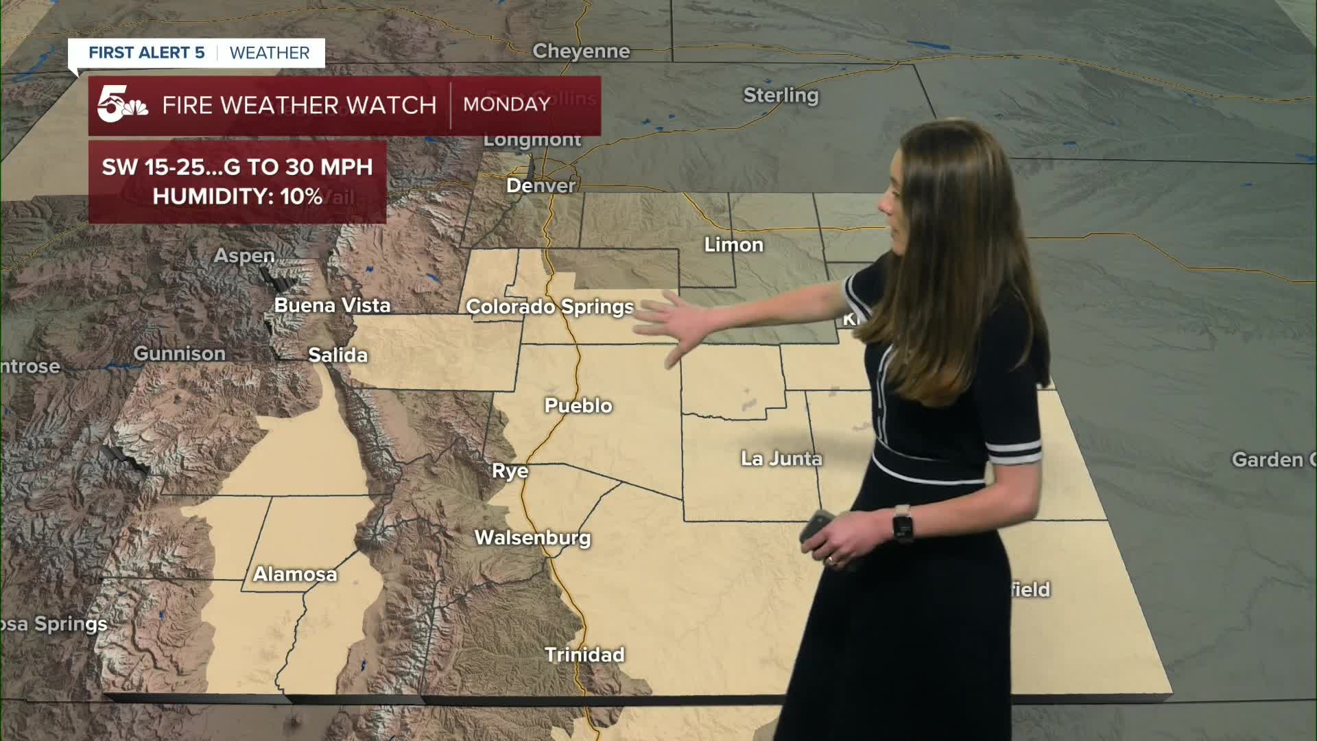 Fire danger returns on Monday with fire weather watches in place throughout the day. A passing low will increase rain and snow chances on Tuesday. This will be mainly during the evening and pick up overnight. Once we get into Wednesday, the chance for precipitation remains, but with temperatures warming this will likely be rain for the I-25 corridor. Beyond that, temperatures warm each day.