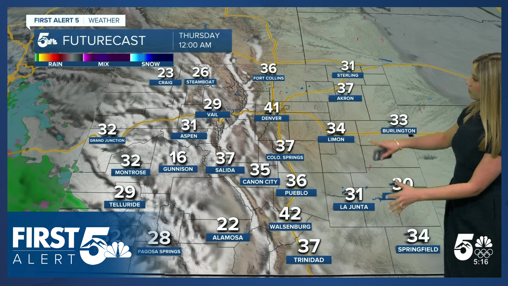 New Year's Eve will be a warm day with sunshine in the morning and high clouds in the evening. Midnight temperatures will fall to the mid-30s. The clouds may obscure some of the fireworks on Pikes Peak.