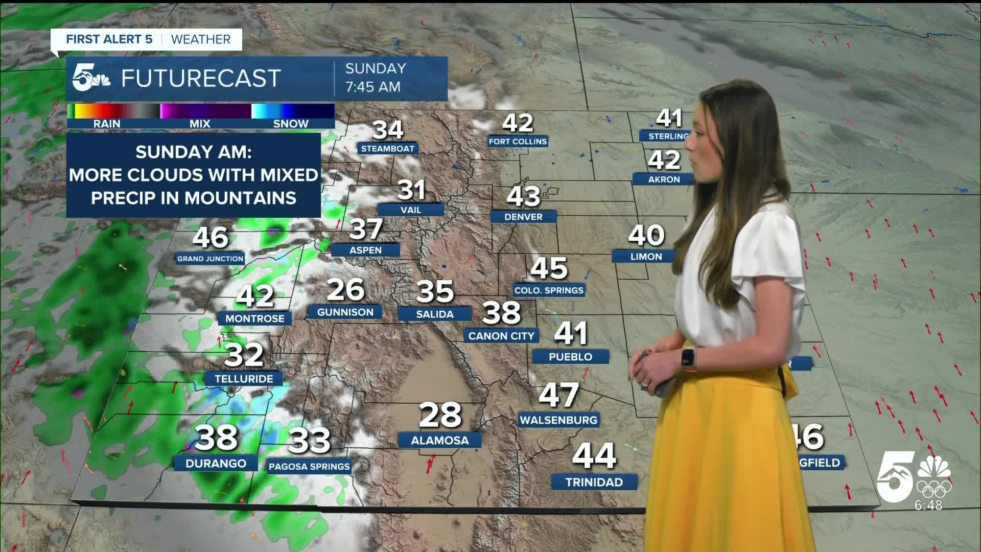 Morning temperatures will dip into the 30s, so if you have an early morning you will want your jacket. Pueblo will be quite warm with highs in the mid-70s. Sunny conditions will last throughout the day.