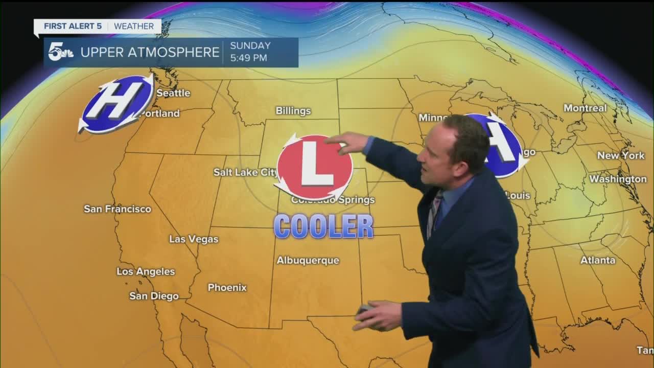 High pressure will continue to influence our weather through Thursday, with warmer than average highs and dry weather conditions. Beginning on Friday, a trough of low pressure will replace high pressure, allowing for a transition to a more active period of weather. After a few isolated storms on Friday, rain chances will increase this weekend, along with cooler, more seasonal temperatures.