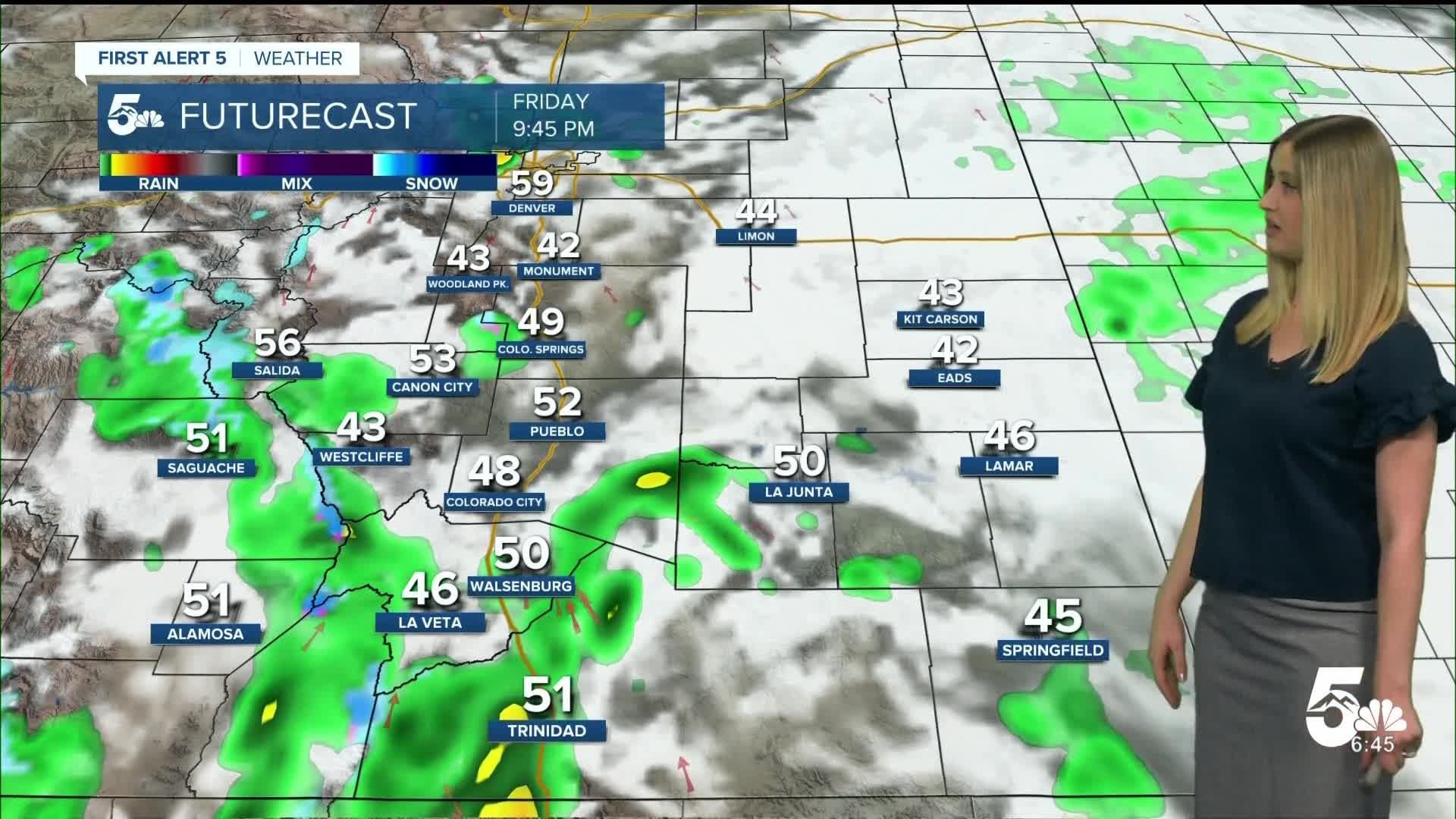 On Saturday, temperatures will be about 5-10 degrees warmer than on Friday. In the afternoon, there will be another round of rain and thunderstorms scattered across southern Colorado.