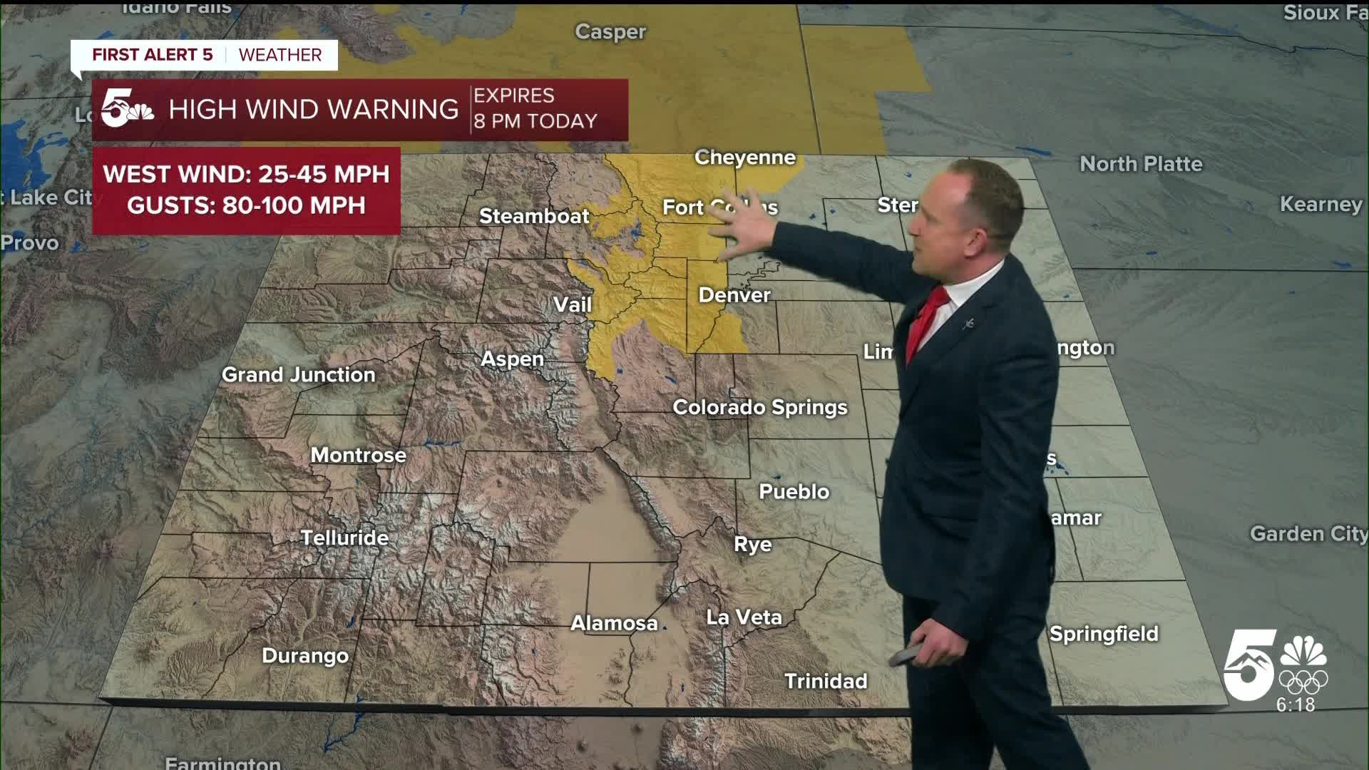 Mountains forecast: High: 40s; Low: 20s/30s. It's already been windy this morning and the wind won't stop today or tonight in the mountains, with peak gusts between 45-60 mph. To the north of us, High Wind Warnings have been issued for the Front Range mountains and foothills, with peak gusts in these areas around 80-100 mph.