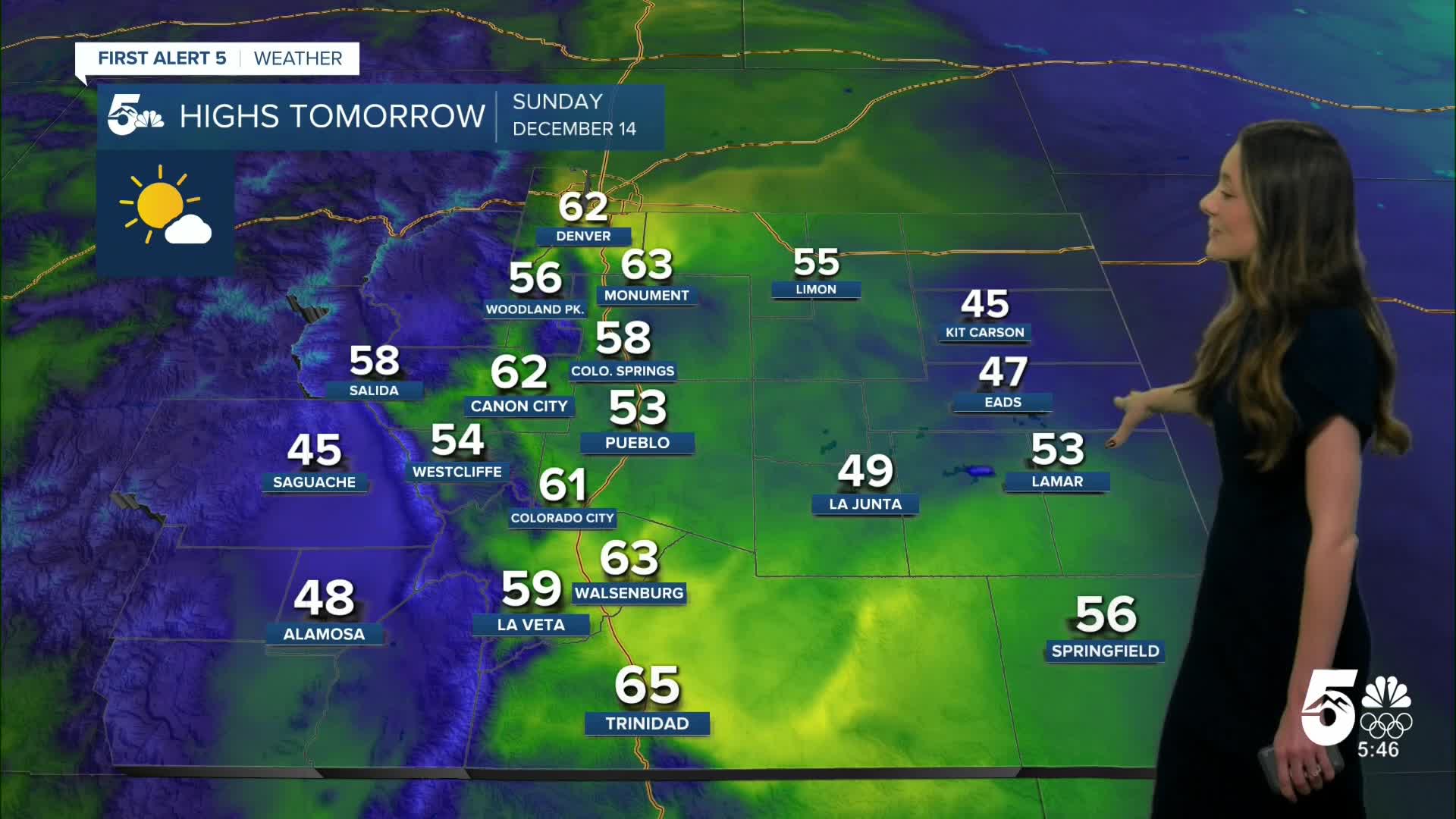 Walsenburg and Trinidad forecast: Low: 29; High: 63/65;