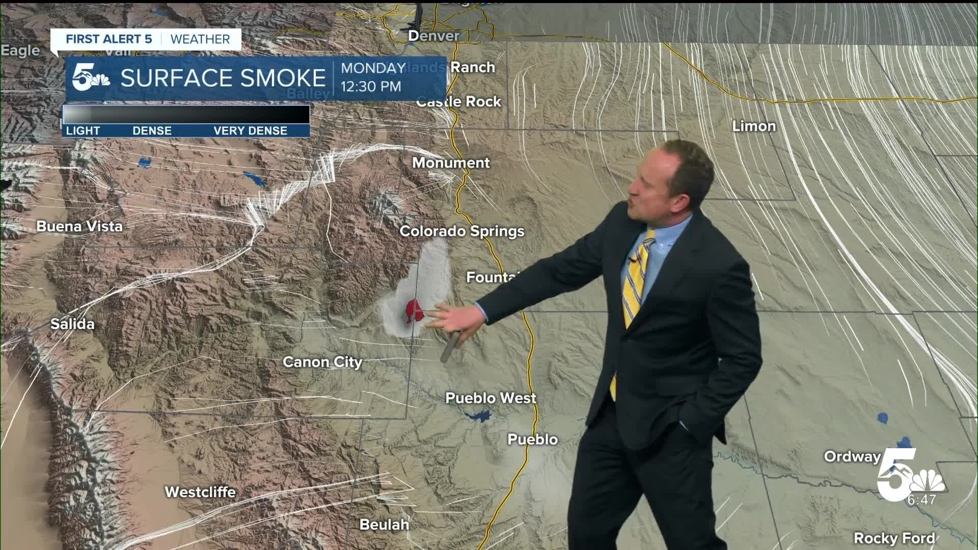 Wind gusts to 20 mph can be expected this afternoon around the 24 Fire, and this may help to transport some smoke into the Pikes Peak Region this afternoon. It should also give firefighters the upper hand on the blaze, which remains 0% contained as of 7:30 am.