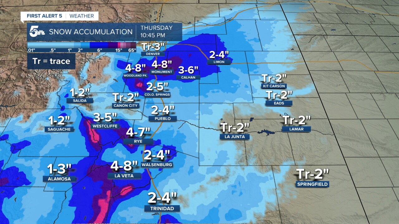 Snow showers will expand from south to north across southern Colorado tonight.