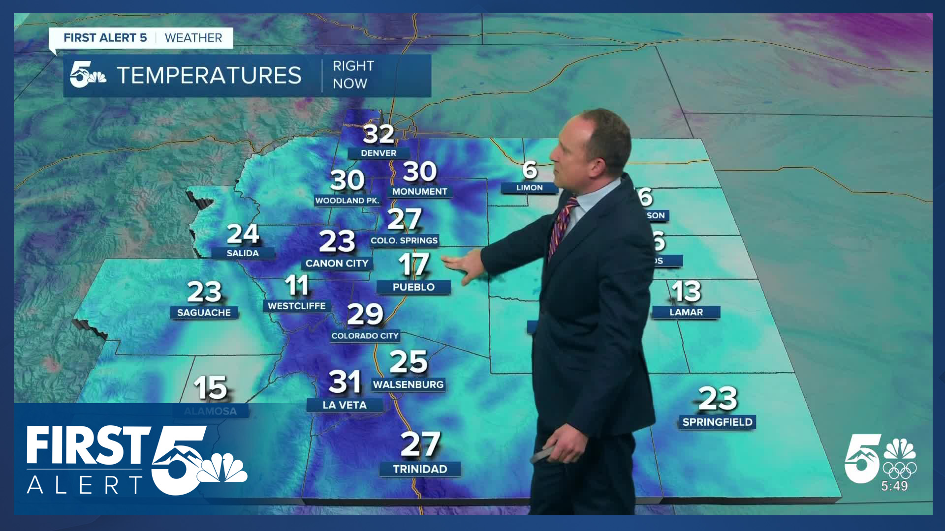 After a chilly weekend, temperatures will be in recovery mode today, jumping up as much as 10-20 degrees across Southern Colorado. Highs will rebound into the 50s and 60s, with afternoon winds on the Plains from the S/SE, sustained at 10-15 mph.