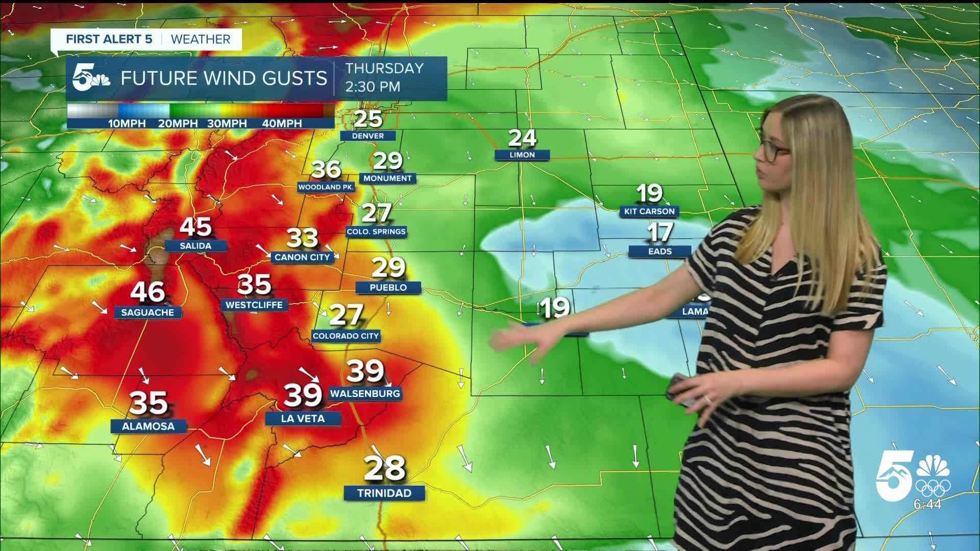 It will be mild and gusty on Thursday. Wind will be out of the WNW at 10-25 mph, gusting to 35 mph.