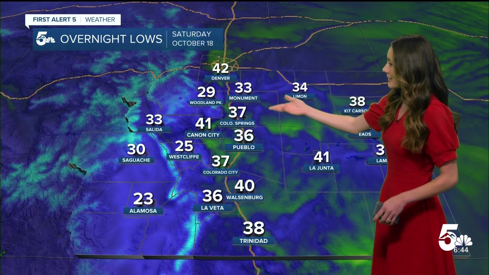 Pueblo will dip into the mid-30s overnight, but not quite make it to freezing. There is still a possibility of some frost across the area. Temperatures will still get warm in the afternoon, eventually reaching the lower 70s.