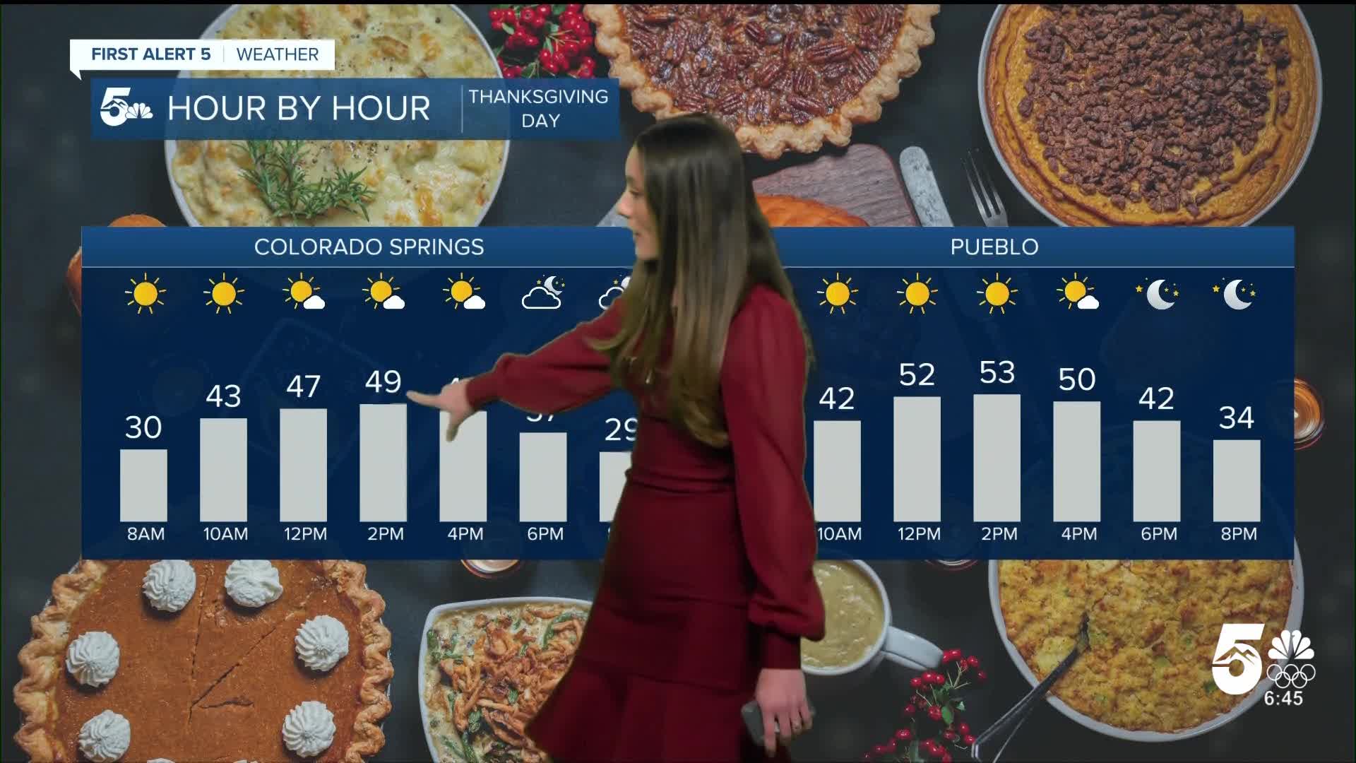 Pueblo will have a chilly start to Thanksgiving Day with morning lows in the 20s. There will be some sunshine to help temperatures get into the lower 50s. If you have any outdoor activities, you will need a jacket.
