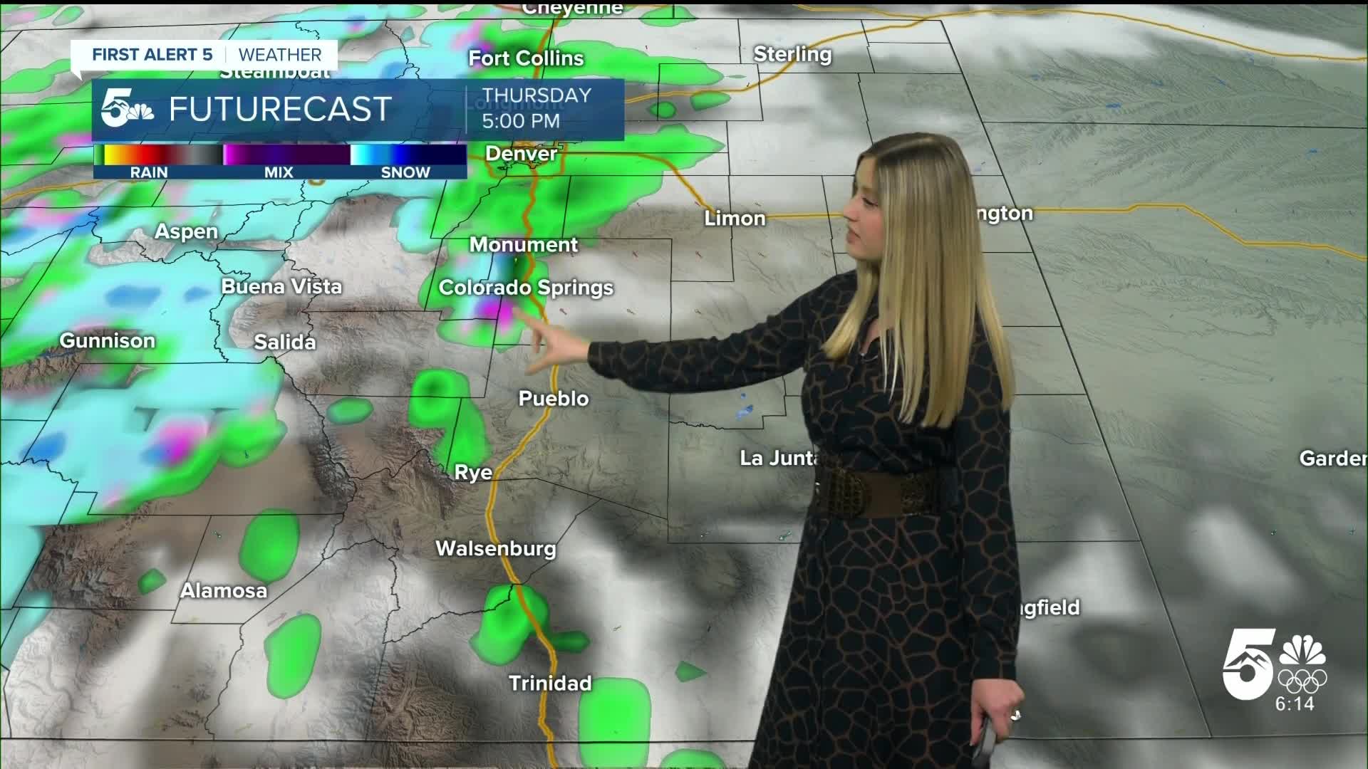 Friday will be mostly cloudy with high temperatures in the 40s and 50s. There is a better chance of widespread showers on Friday afternoon and overnight, with rain in the plains and snow in the mountains. The rain-snow line could drop as low as 6,500 feet on Friday night.