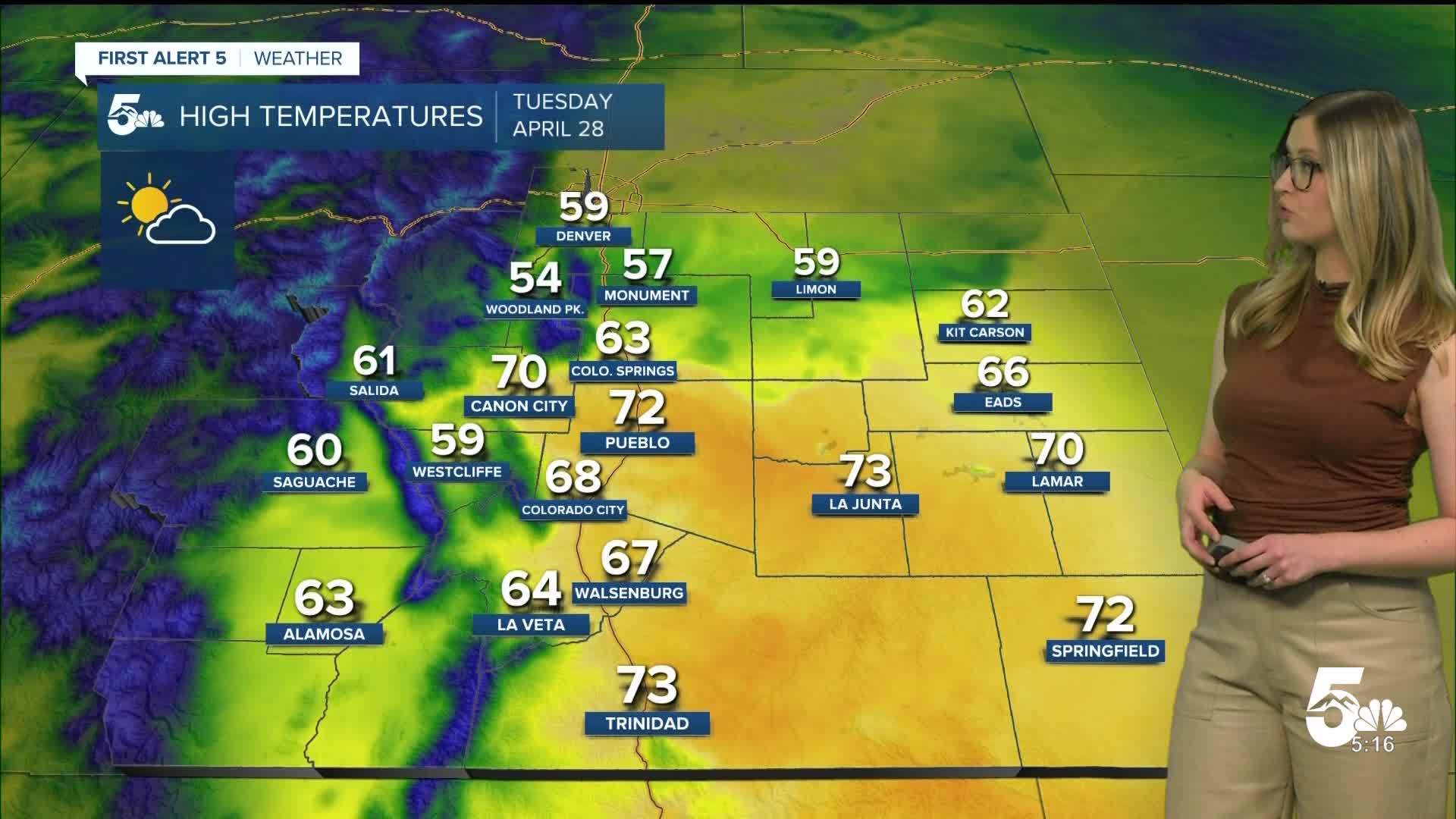 Looking ahead, the weather will bring a nice Spring soaker to southern Colorado for the latter half of the week. On Wednesday, spotty afternoon rain showers and thunderstorms are expected. Widespread showers take over the region on Thursday, with a cloudy and chilly wet day expected. There will be a transition to snow in the mountains down to 7,000 feet (perhaps as low as 6,000 feet) on Thursday night into Friday morning. Showers will slowly taper off on Friday.