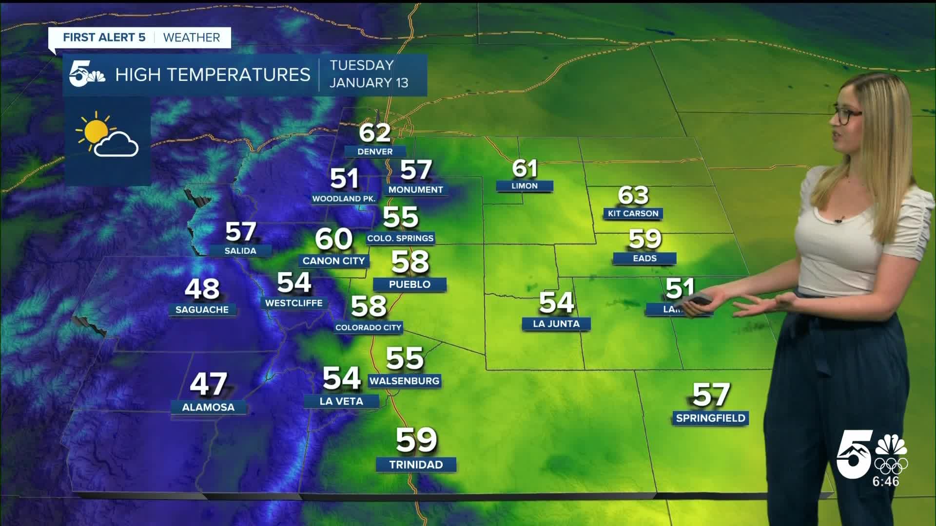 Walsenburg and Trinidad forecast: Low: 31/26; High: 55/59;