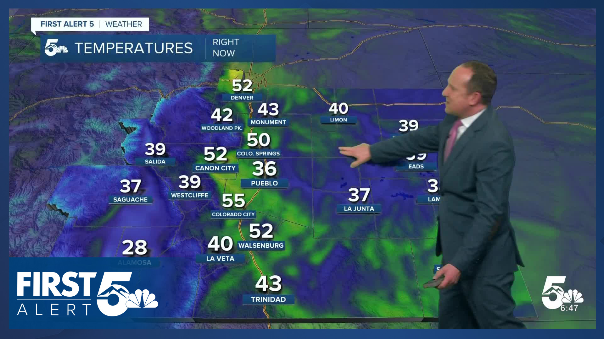 Colorado Springs forecast: High: 78; Low: 46. Ahead of record breaking heat later this week, highs on Wednesday will continue to warm, topping out in the upper 70s in Colorado Springs. Today's record sits within reach at 80 (2017).