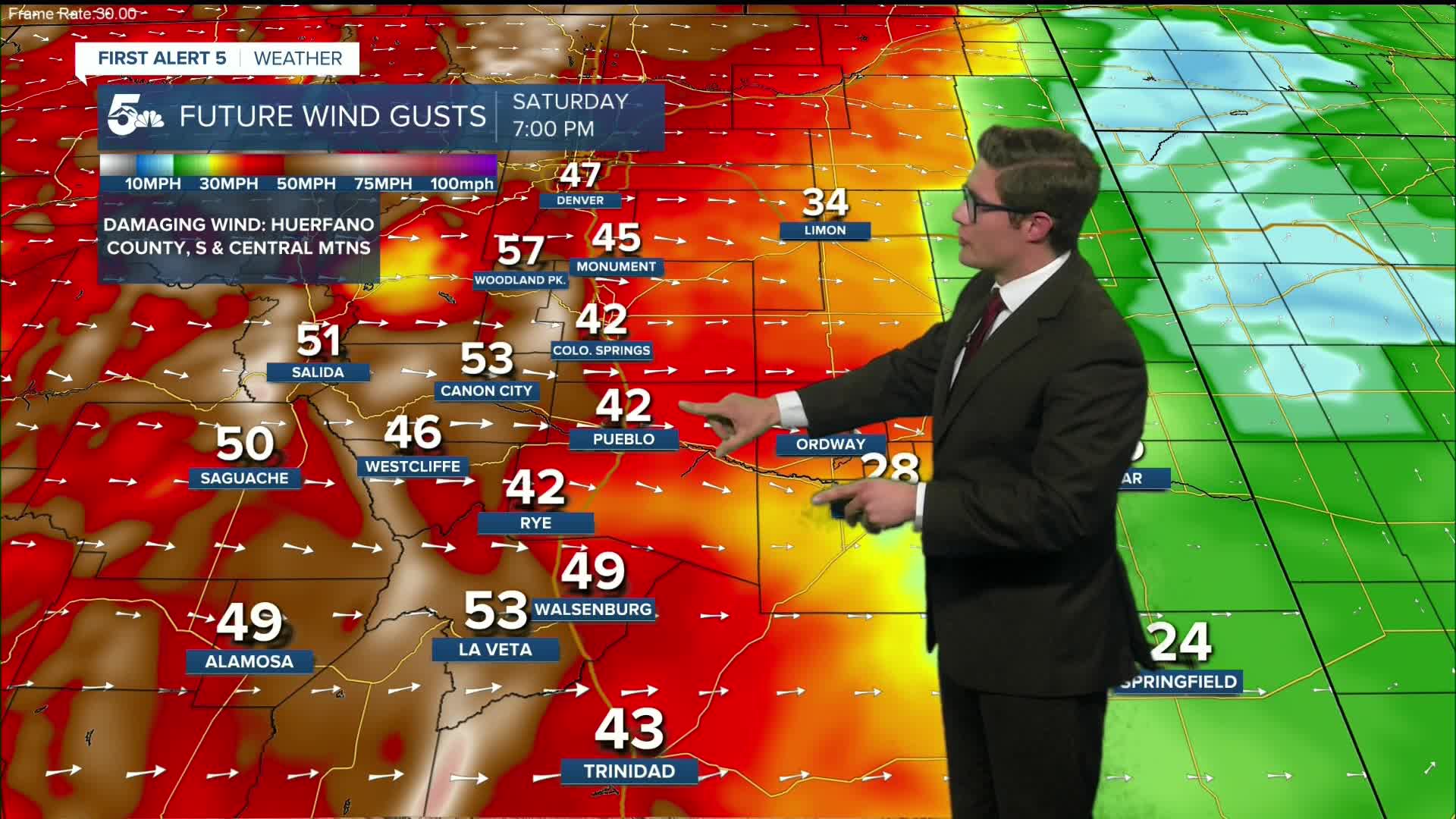 *This MORNING: Gusts are strongest in Teller County, S. Mtns, gap flow zones (Huerfano County, areas E. of La Veta Pass)