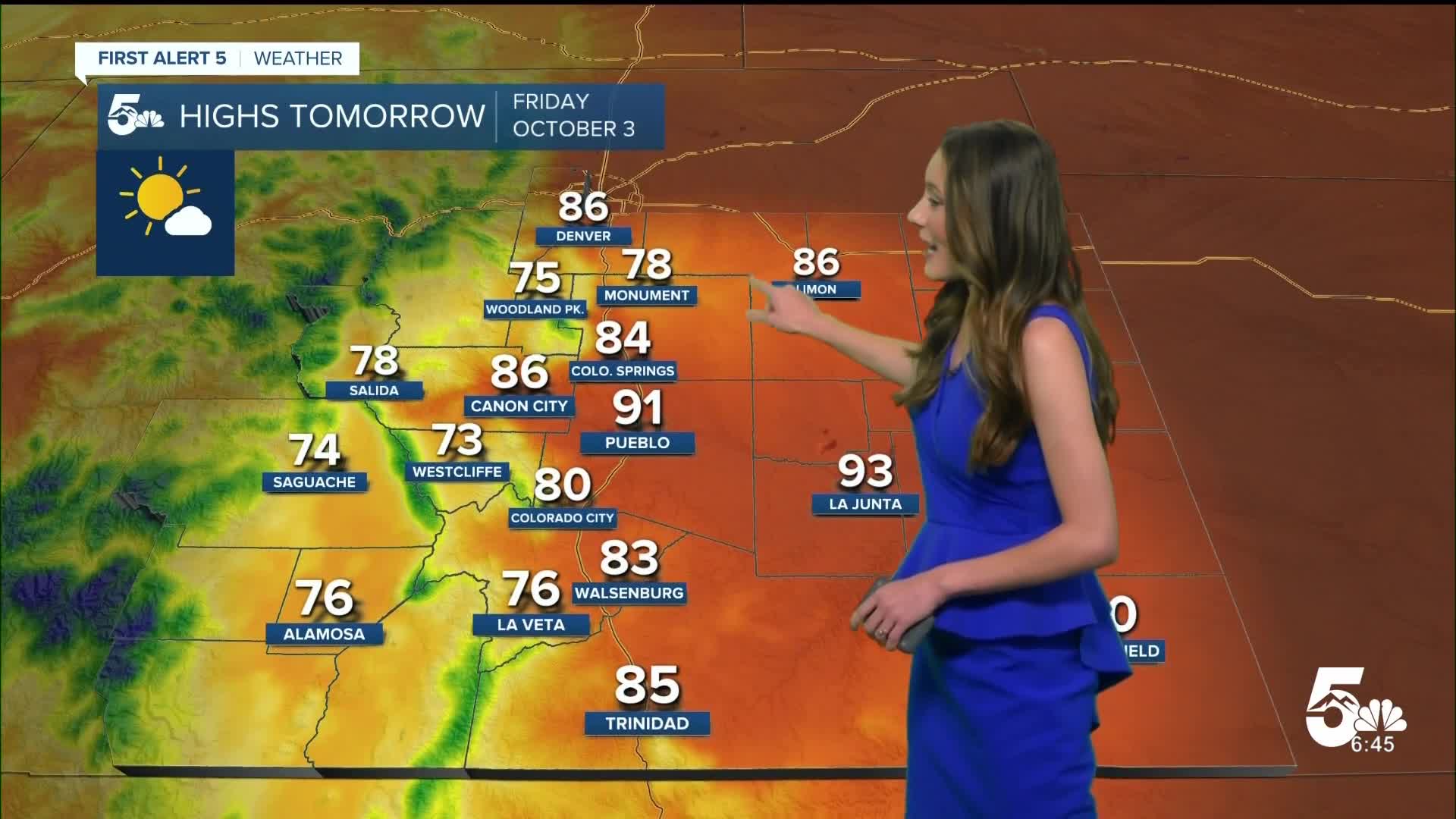 The plains will have the warmest temperatures across southern Colorado on Friday with highs reaching the 90s. There will be sunshine throughout the day and conditions will stay dry.