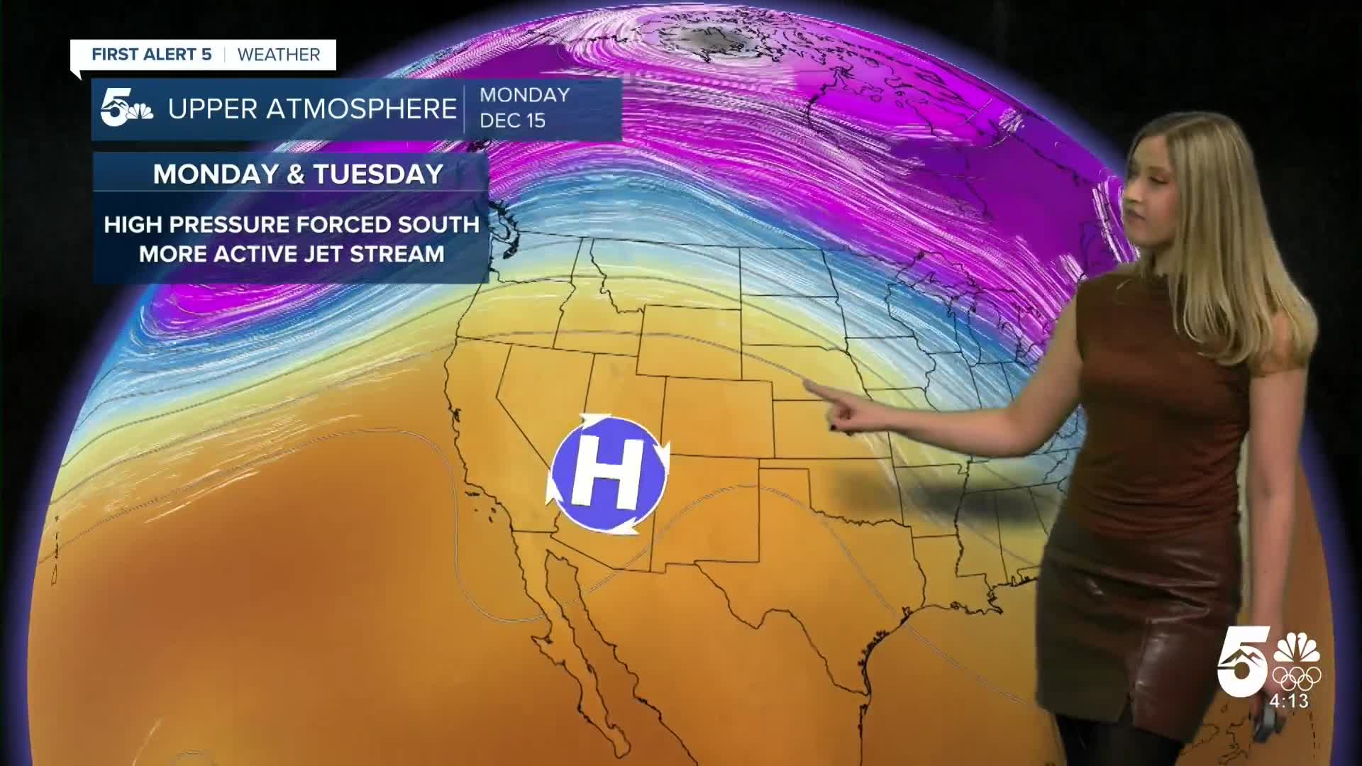 It will be mostly sunny with mild temperatures on Monday. Wind will be from the WSW at 5-10 mph, gusting to 20 mph.