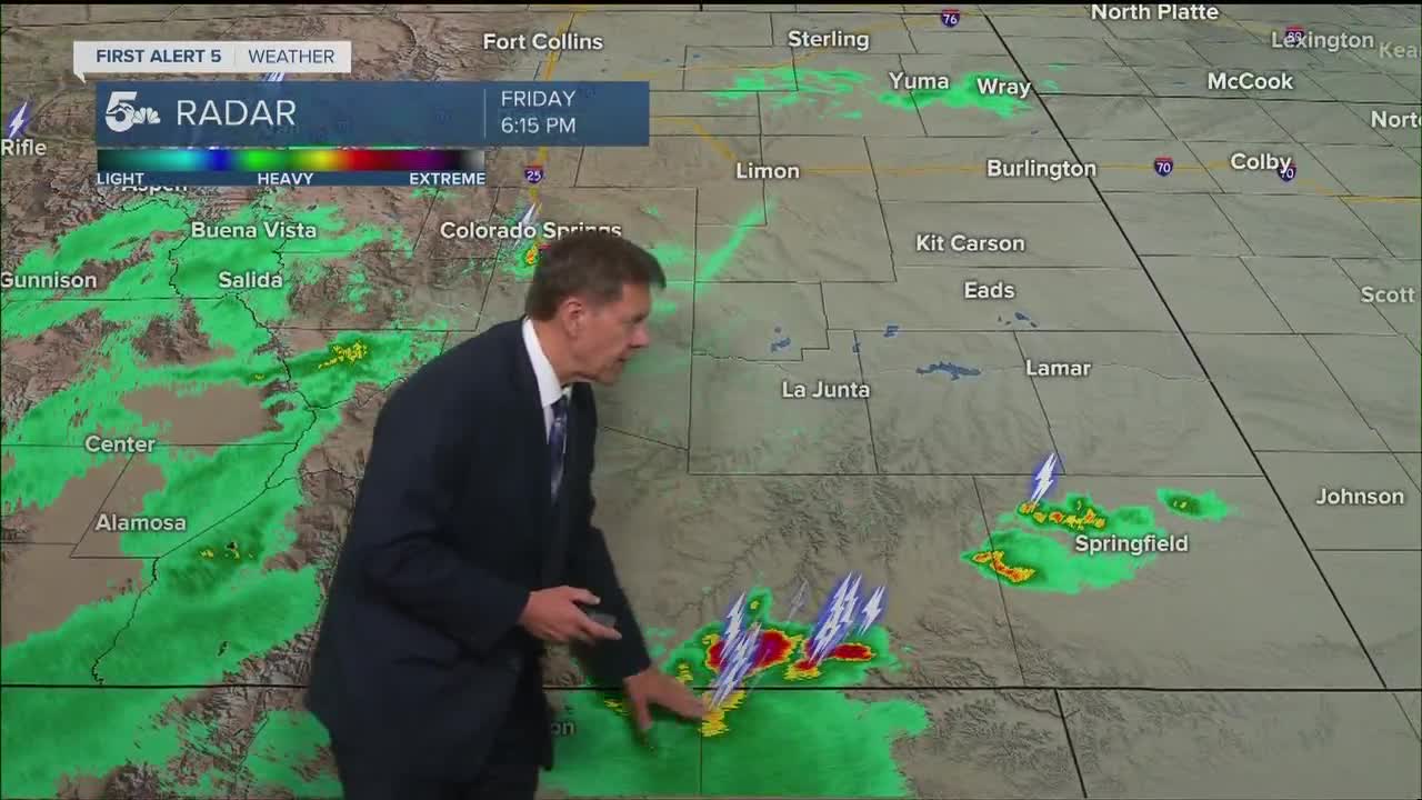 A few showers and thunderstorms will remain in the mountains and foothills through 10-11 pm. Then conditions will be mostly clear waking up Saturday.