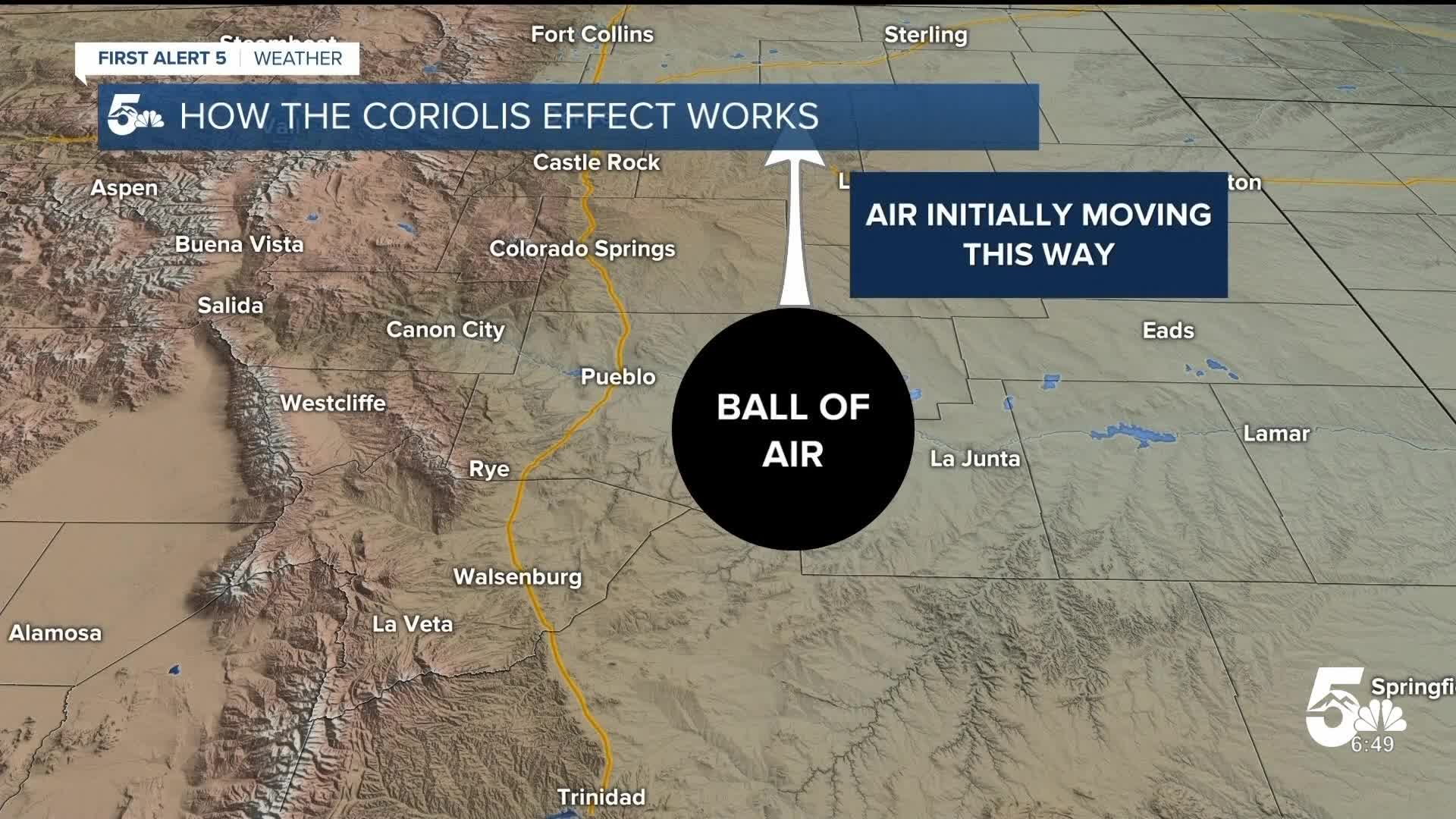In Colorado, the Coriolis effect is responsible for our jet stream which brings storms to us. It's our storm conveyor belt. It's also why areas of low-pressure spin counterclockwise and why high-pressure systems spin clockwise.