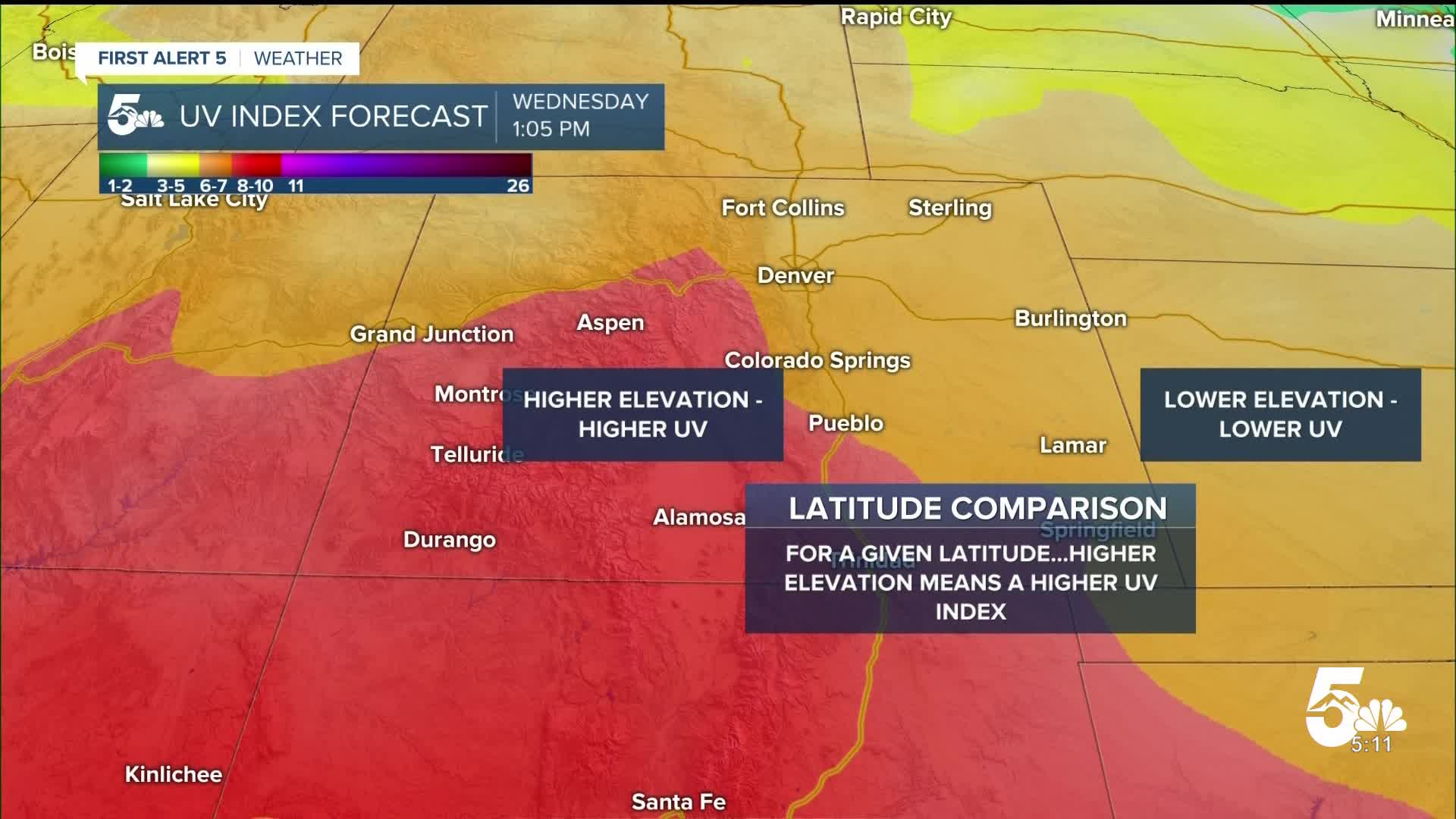 The UV index is a term you hear all the time, but like dew points, it can be difficult to actually understand. Thanks to Colorado’s high elevation, our UV index spikes faster than other areas at our same latitude. That means you can now get a sunburn very quickly.