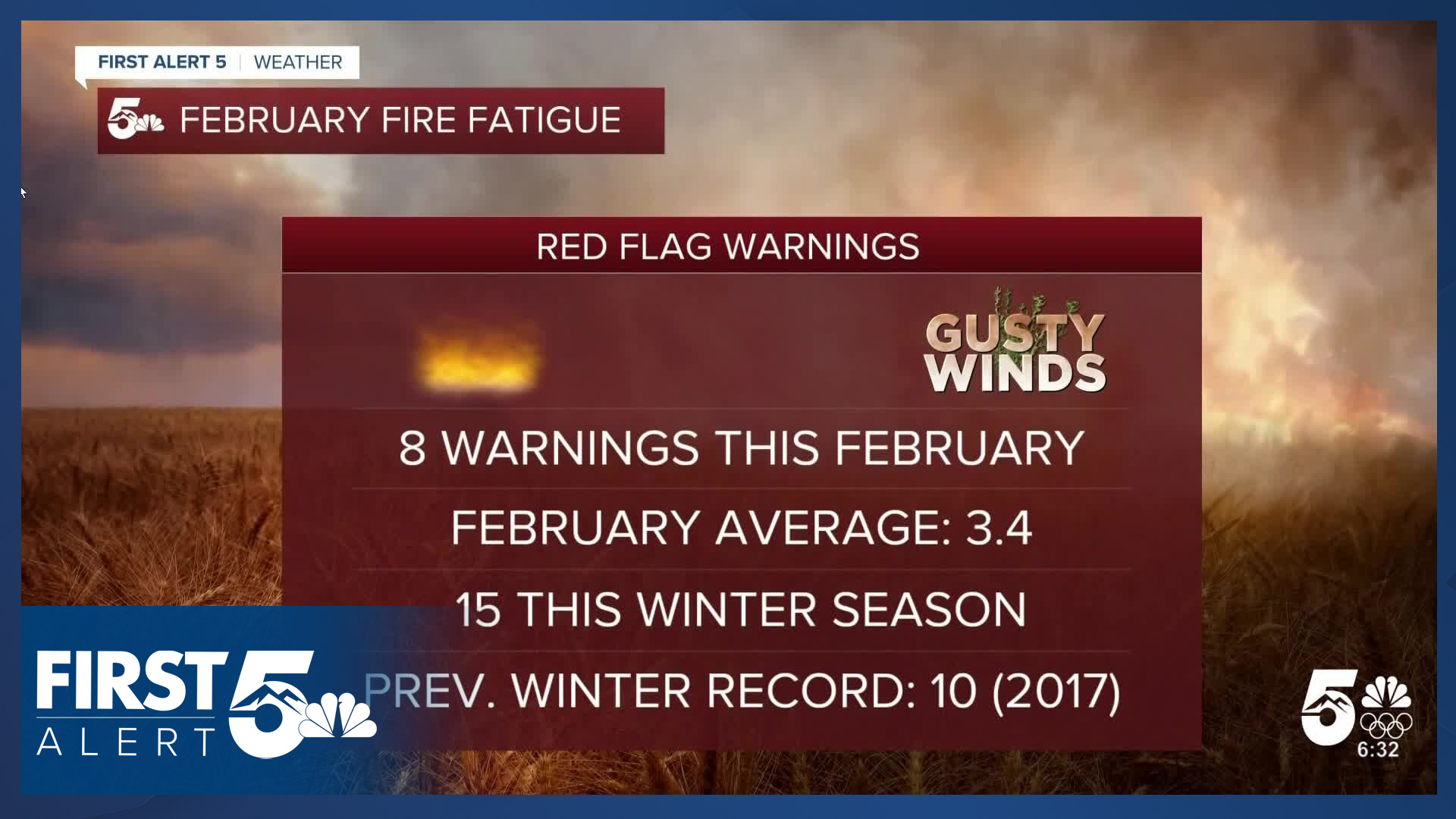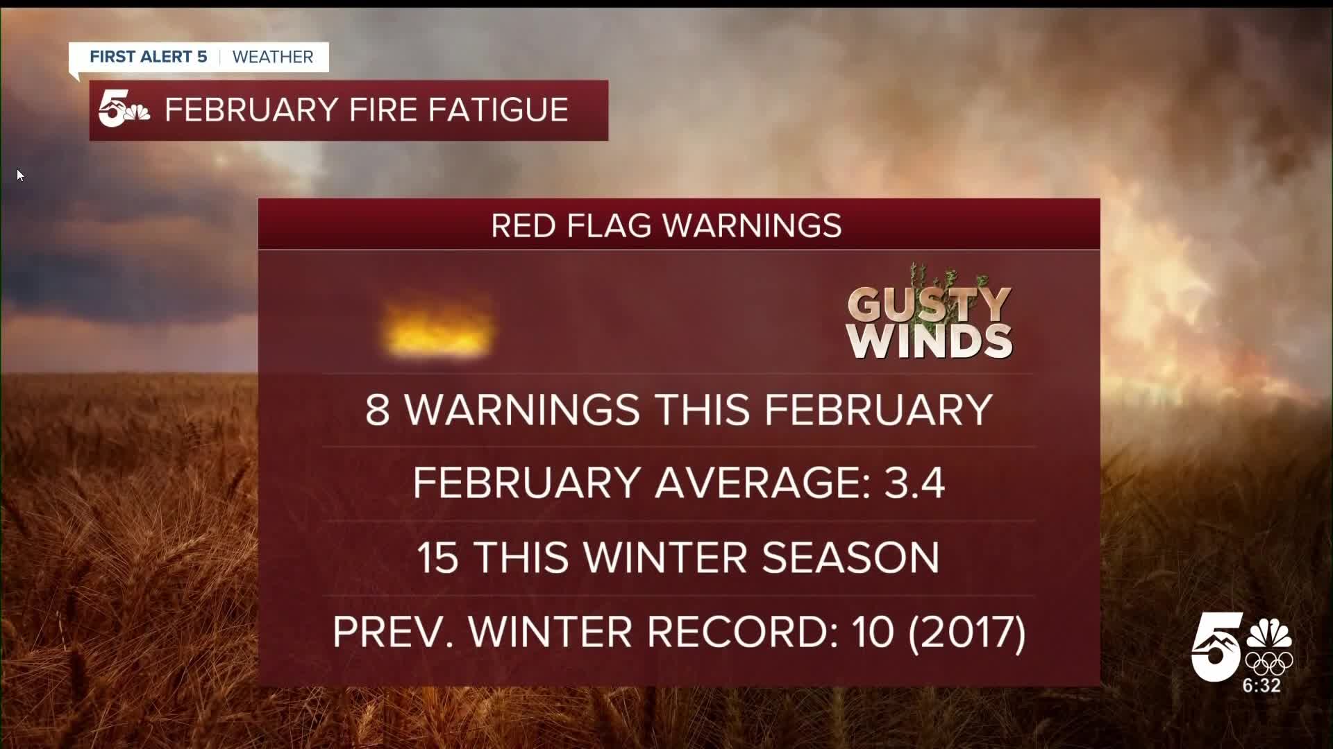Meteorologists at the National Weather Service have issued 8 red flag warnings this February with a total of 15 this winter season. February averages only 3.4 warnings during the month.
