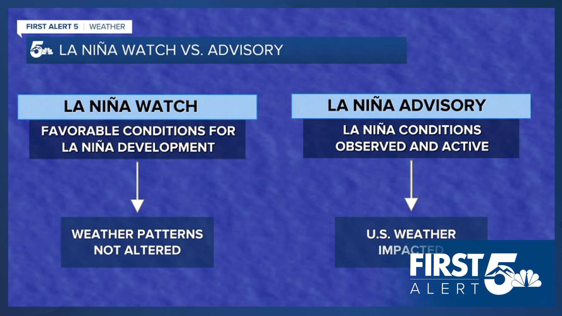 While a La Niña watch indicates that conditions are favorable for development, an advisory means those conditions are actively present and measurable.