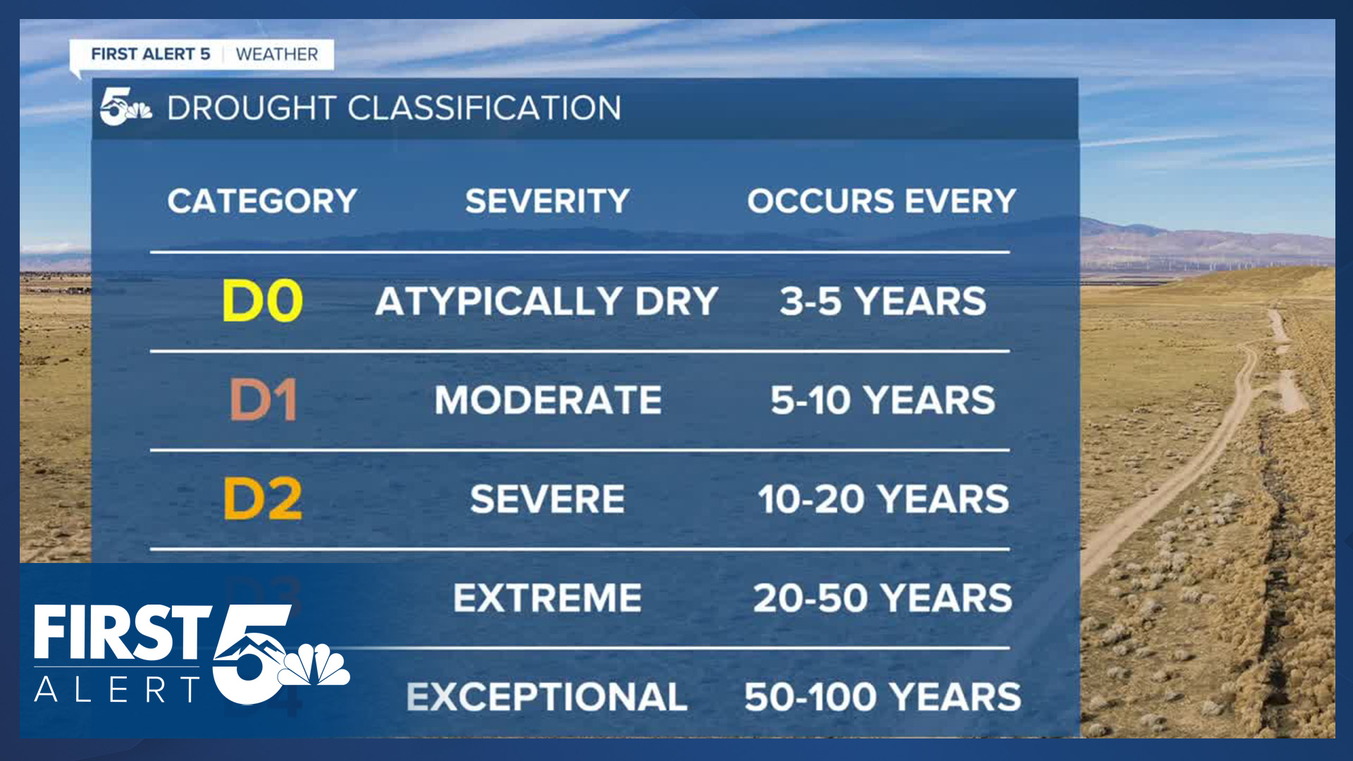 Conditions are defined on a scale ranging from D0, meaning abnormally dry, to D4, meaning exceptional drought. While there is no set rule, D0 indicators are generally between the 20th and 30th percentile. D1 indicators are in the 10th to 20th percentile, D2 between the fifth and 10th percentile, D3 between the second and fifth percentile, and D4 between the zero and second percentile. In other words, when looking at things like reservoir levels, streamflow, snowpack, precipitation deficits, evaporation demand and more - those percentiles come into play for the person who is building the drought map. They also speak to local experts.