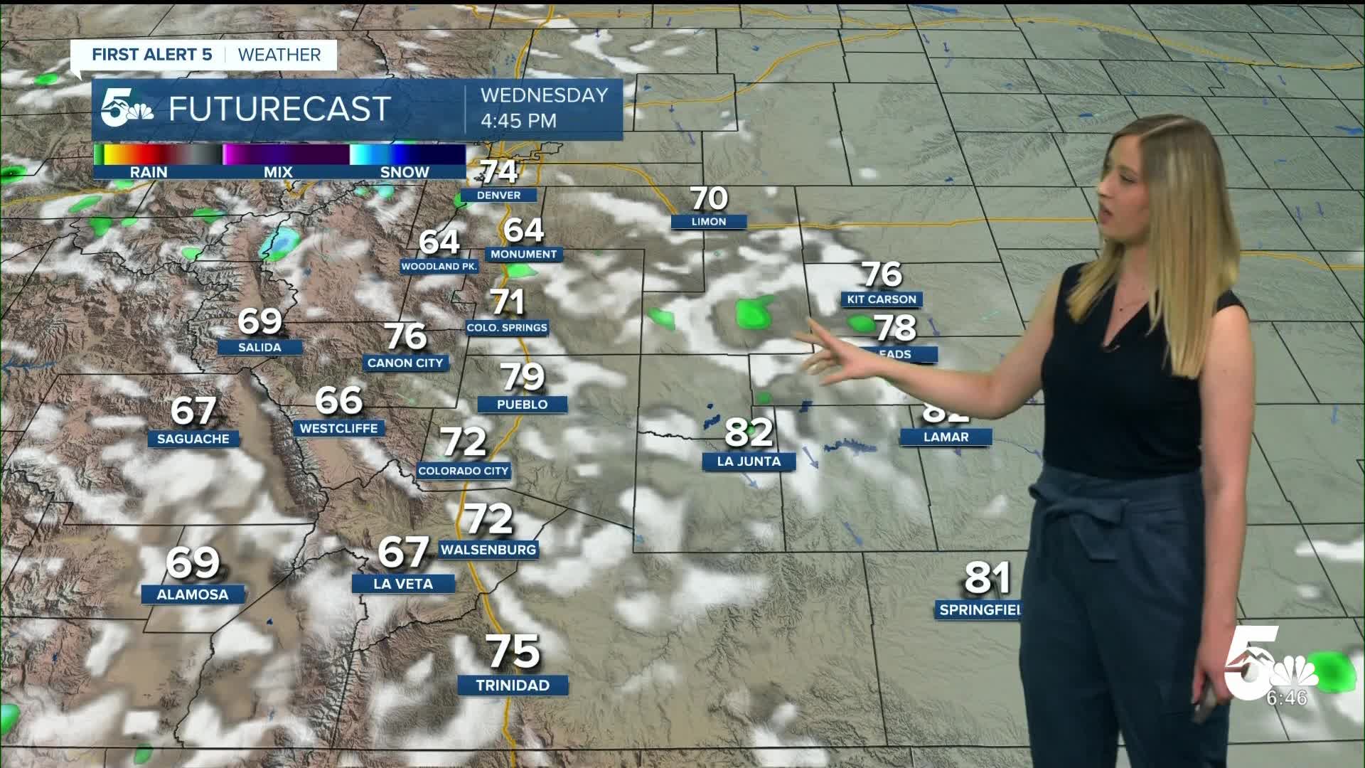 Walsenburg and Trinidad forecast: Low: 41/37; High: 72/75;
