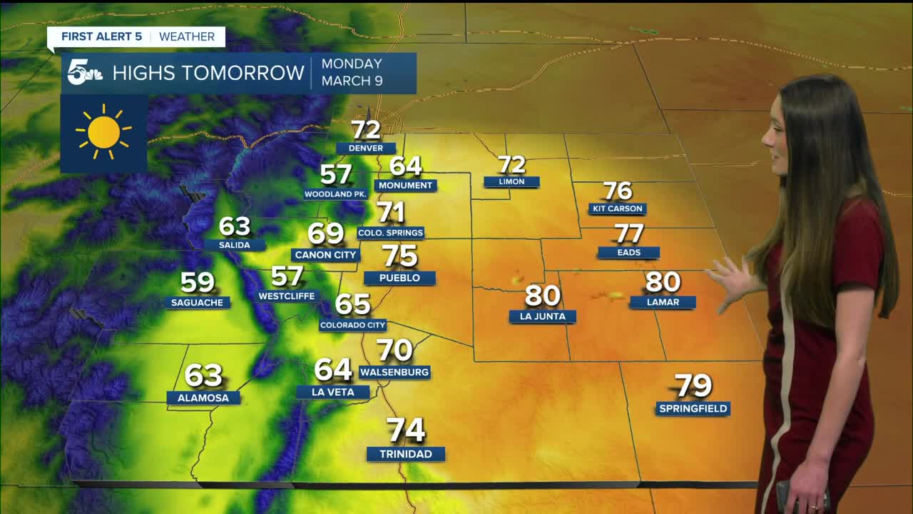 The eastern plains will have mostly clear conditions to start the day with morning temperatures in the 30s. The warmest temperatures will be closer to Lamar and La Junta with highs reaching the 80s in these areas. Elsewhere, highs will be in the 70s.