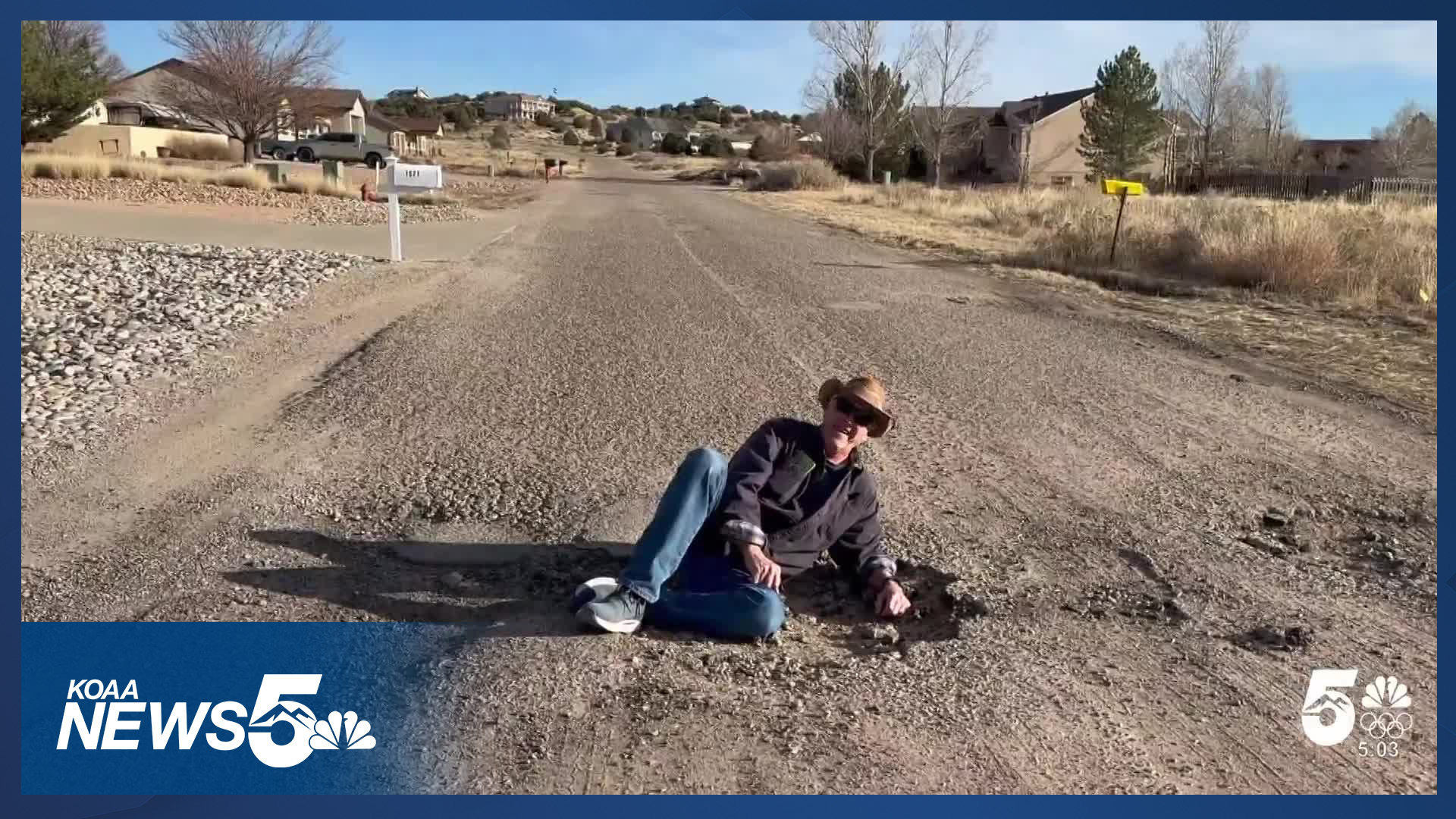 Mark Senn, a Pueblo West resident who previously described the roads near his house as an obstacle course, showed us the severity of the problem by lying down in one of the potholes.
